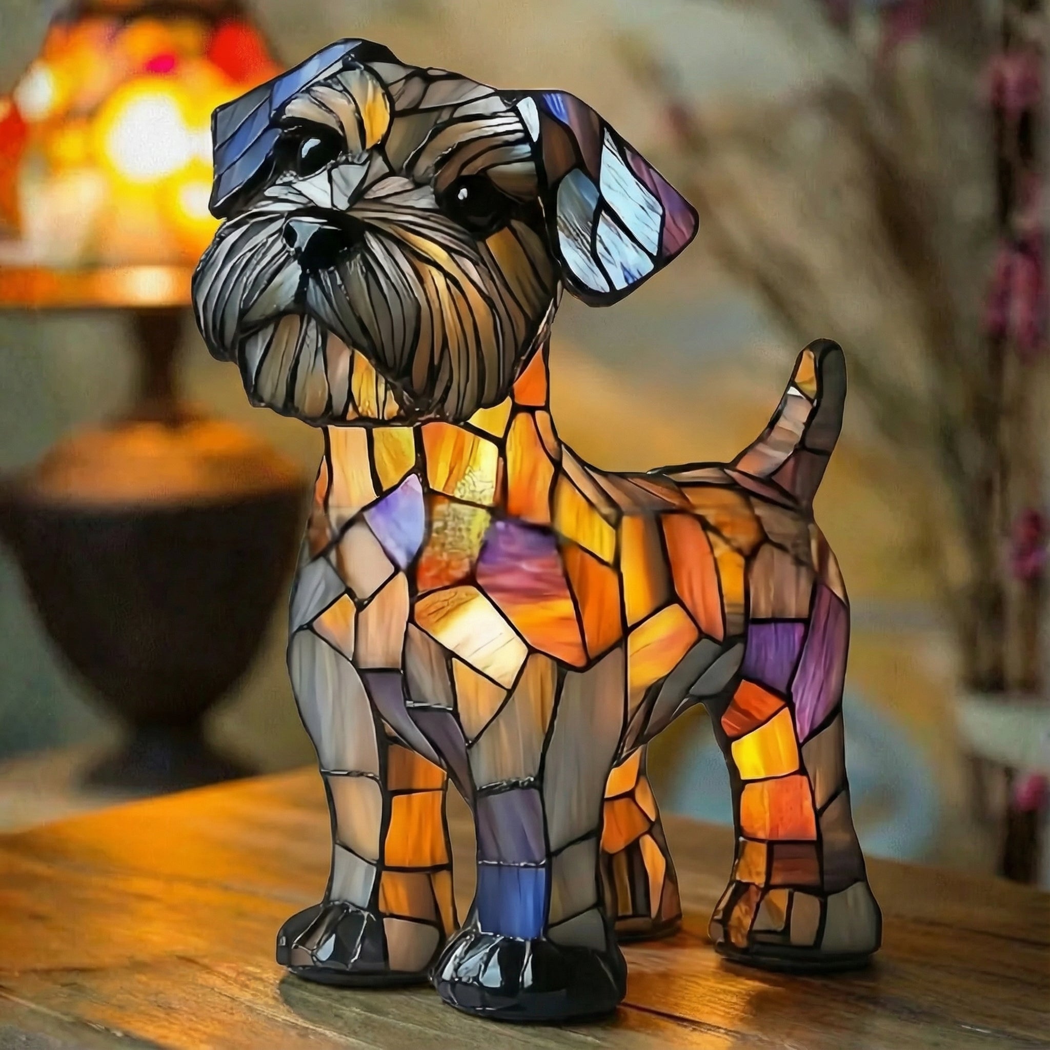 Ova dekorativna lampa od vitraža unosi nežno, ambijentalno osvetljenje i odmah daje prostoru karakter. Savršena je za dnevnu sobu, spavaću sobu, hodnik ili kao poklon.